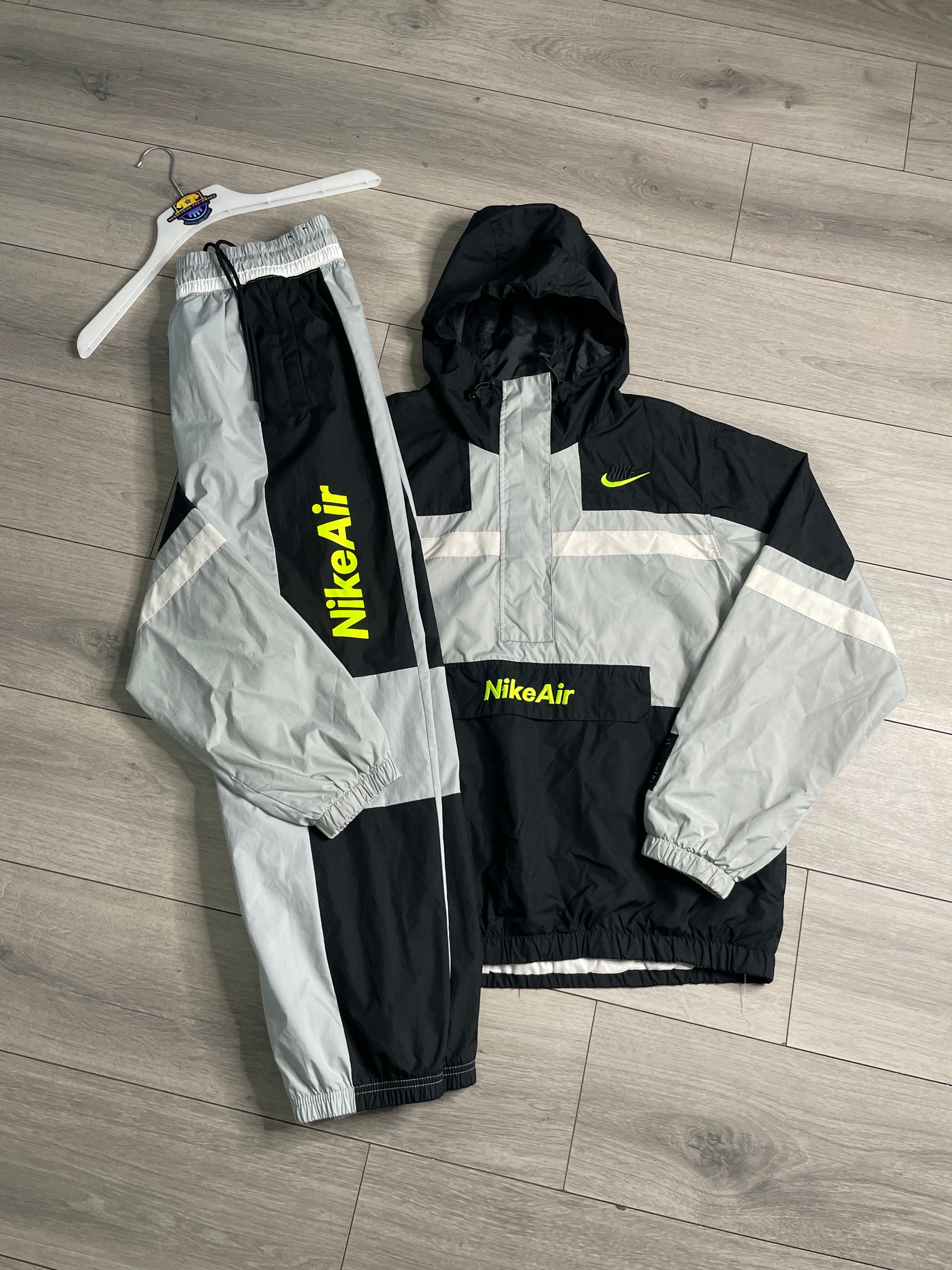 Nike “dave” neon/grey woven hooded pullover & pants tracksuit